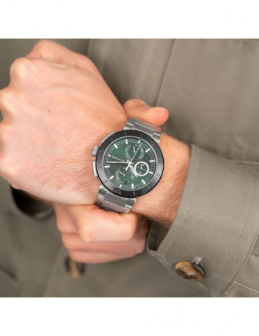 Montre cadran vert avec compteurs pour lecture de la date. Fenêtre sur mouvement quartz. Bracelet milanais réglable. Taille boîtier 44mm TOMMY HILFIGER Montre Stewart 1710608 Rêve Corner